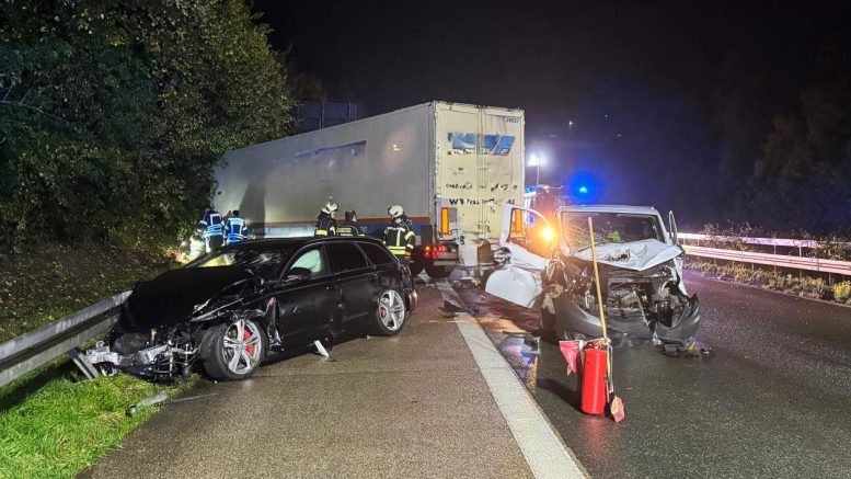 Die Feuerwehr sicherte die Einsatzstelle gegen den nachfolgenden Verkehr, stellte den Brandschutz sicher und klemmte die Batterien an den Unfall-Fahrzeugen ab. Austretender Dieselkraftstoff wurde mit Bindemitteln aufgenommen. Einsatzende war gegen 8.00 Uhr. Die Feuerwehr war mit 19 Kräften und 4 Fahrzeugen vor Ort.