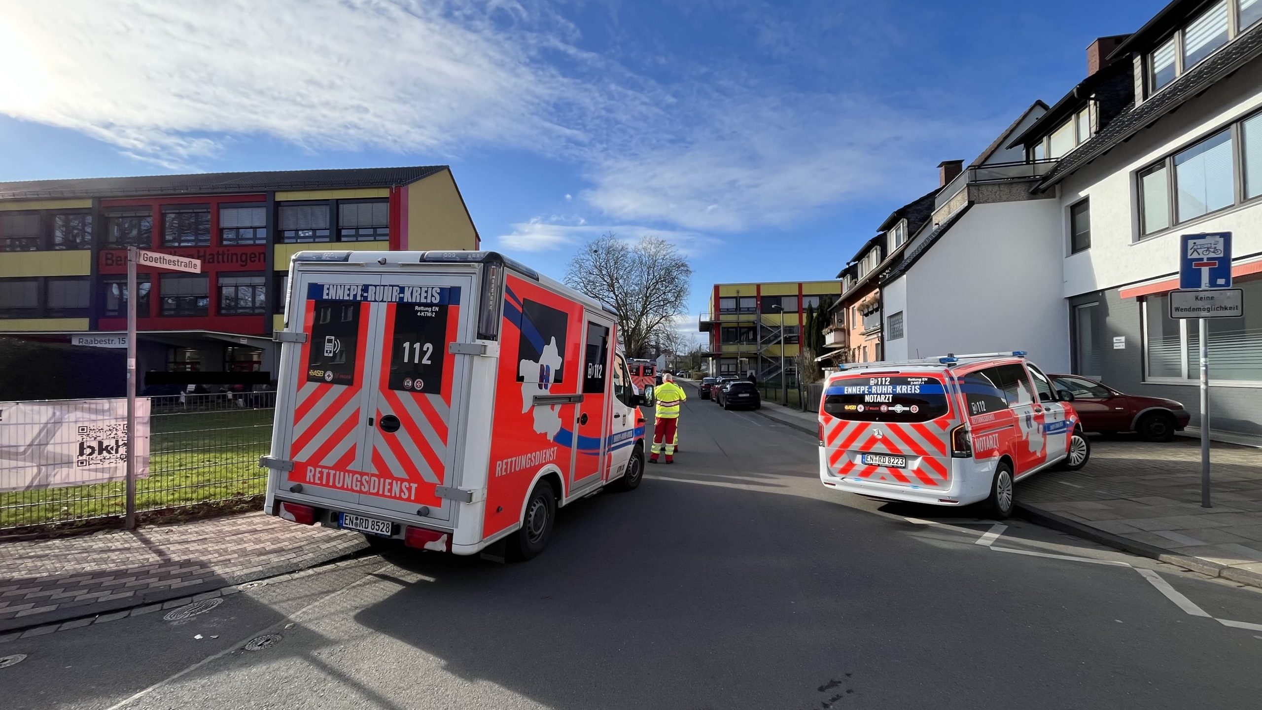 Hattingen – Großeinsatz am Montagmittag (2. Februar 2026) am Berufskolleg in der Raabestraße. Wegen eines vermutlich ausgetretenen Reizgases rückten Feuerwehr, Polizei und Rettungsdienst zu einem umfangreichen Einsatz aus. Mehrere Schüler klagten über Atemwegsreizungen, eine Schülerin wurde zur weiteren Behandlung in ein Krankenhaus gebracht.