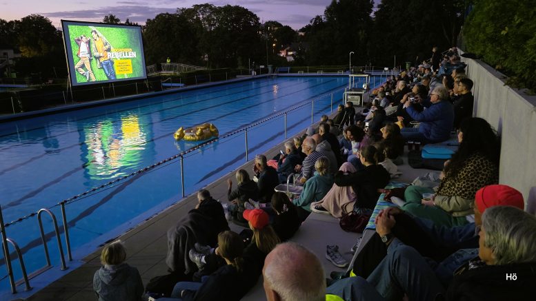 Der Freibad Förderverein (FFS) hatte eingeladen und bot ein kurzweiliges Programm auf dem Freibadgelände. Ab 18 Uhr war Einlass, auf der Großleinwand am 50-m-Becken gab es den Film „Die Wochenendrebellen“ zu sehen, der vor 2 Jahren in den deutschen Kinos ein großer Publikumserfolg war.