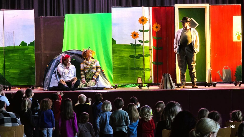 Während der Aufführung verstanden es die Darsteller des Kinder- und Jugendtheaters schon nach kurzer Zeit, dass die Kinder lautstark mitmachten und auch Petterson und Findus auf gewollte Fehler hinwiesen.
