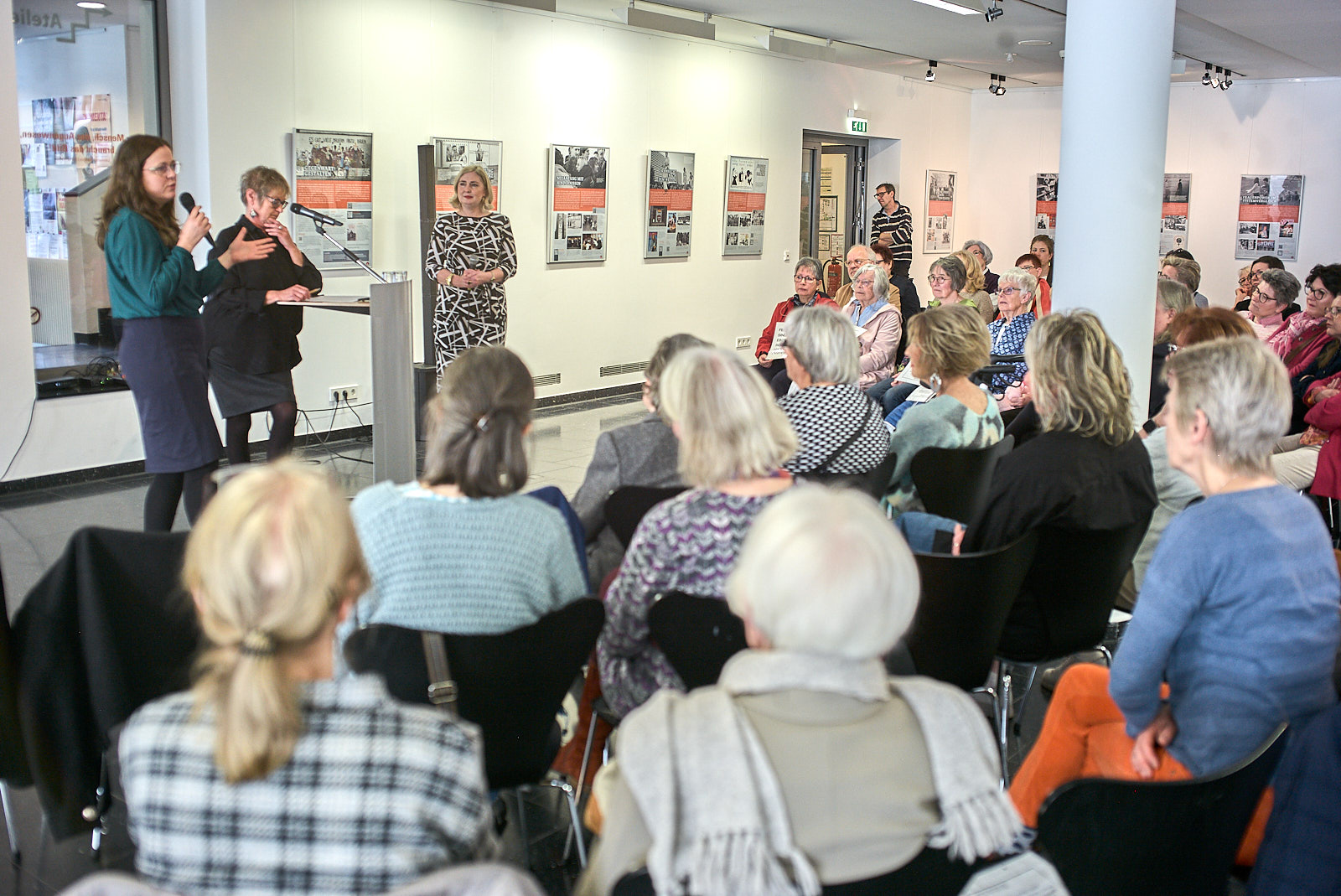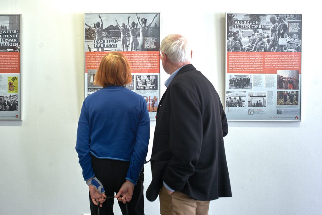Früher hieß es nach der Eröffnung oft: „Bürgermeister und Presse raus.“ Heute sind alle willkommen, auch Männer – ein Fortschritt, der in der Vergangenheit nicht selbstverständlich war. Bürgermeister Dirk Glaser begrüßte die Gäste, bevor die Podiumsdiskussion begann. Thema: „Frauen im geteilten Deutschland“. Eine spannende Fragestellung, schließlich sind Klischees über Ost- und Westfrauen auch 35 Jahre nach der Wiedervereinigung noch lebendig. Doch während die Ausstellung dazu mit prägnanten Zitaten und Bildern für „Aha“-Momente sorgte, blieb die Diskussion auf dem Podium brav. Keine hitzigen Wortgefechte, keine leidenschaftlichen Zwischenrufe – das war früher anders.