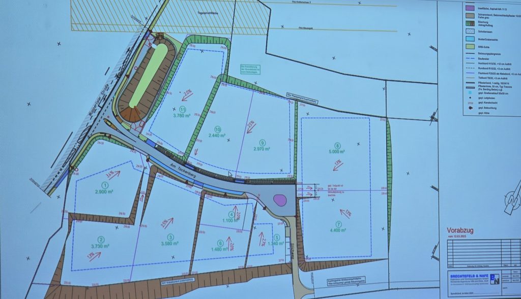 Die Vermarktung der gewerblichen Baugrundstücke im Baugebiet „Am Tackenberg/Am Hilgenstock“ geht weiter voran. Der Ausschuss nahm drei neue Bewerber, die dort Flächen erwerben und bebauen wollen, zur Kenntnis.